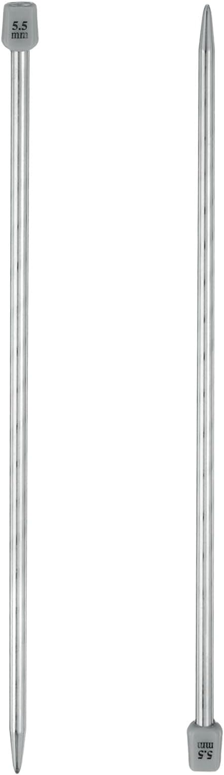 uxcell 2Pcs 5.5mm(I) Single Pointed Knitting Needles Stainless Steel 9.84 Inches Length Metal Weaving Tool for Handmade Projects DIY Knitting