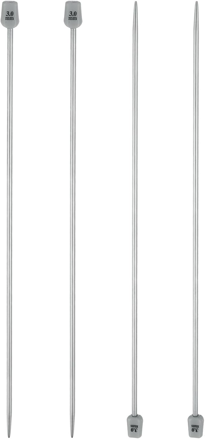 uxcell 4Pcs 3mm(D) Single Pointed Knitting Needles Stainless Steel 9.84 Inches Length Metal Weaving Tool for Handmade Projects DIY Knitting