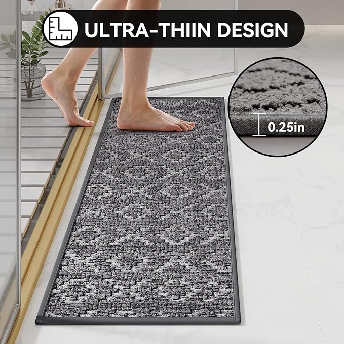 Bathroom Rugs Non Slip, Super Absorbent Quick Dry Bath Mat, Rubber Backing Ultra Thin Bathroom Mats Fit Under Door Bathroom Floor Bathtub Shower