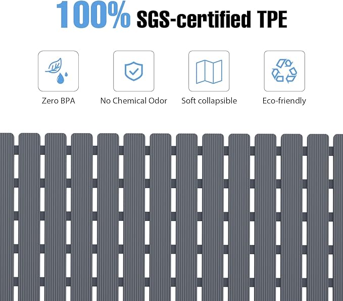 - Eco-Certified Bathtub Mat Material: This non-slip bath mat for shower/tub is crafted with 100% SGS-certified TPE (Test Report NO.CANEC25008026405), featuring Zero BPA & Chemical Odor,trusted by 12,000+ Families for Baby Bath Time Safety.