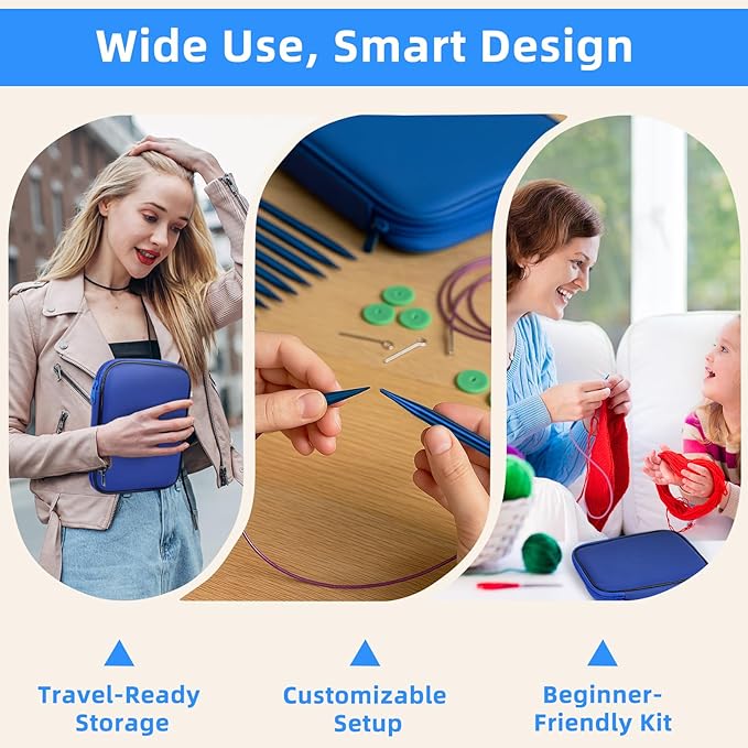 - Comfortable Ergonomic Grip & Easy Storage: Features ergonomic needle tips and comfortable grip for reduced hand fatigue during long sessions. The zippered knitting needle organizer stores all needles, cables, and tools, keeping your knitting set tidy at home or on the go—ideal for travel or clas