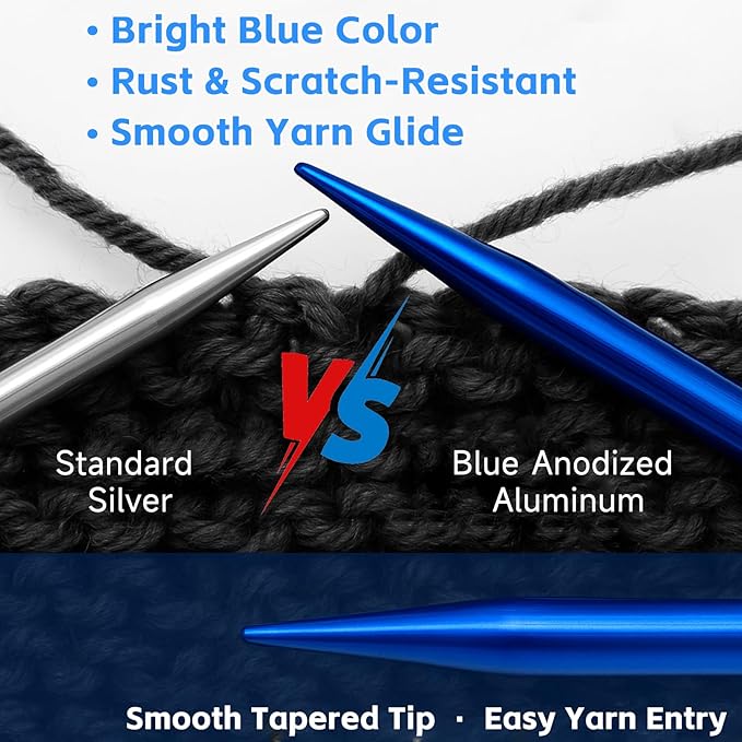 - Premium Aluminum Knitting Needles: Made of lightweight, high-strength anodized aluminum, these knitting needles offer a snag-free, ultra-smooth surface for effortless yarn movement. Compatible with most yarn types including wool, cotton, acrylic, and blends. Perfect for knitters who enjoy both knitting and crochet crafts