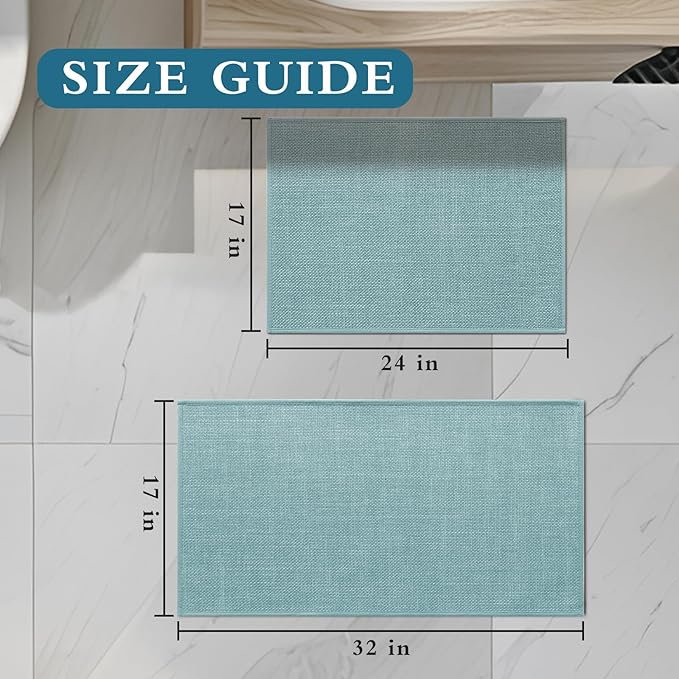 - 【Bathroom Rug Sets 2 Piece】Includes small bath mat 24"x 17" and and 32"x 17". Quick Dry bath mat can be used by the tub, in front of the sink, shower, kitchen