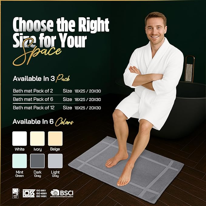 - Made from 100% cotton : Our bath mats for bathroom offer superior softness and absorbency. This 12-pack bath mat set includes 20X30" mats that function as a tub mat, quickly soaking up water and keeping your feet dry.