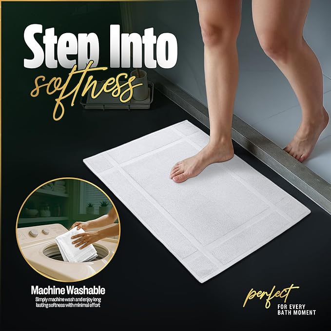 - ✅ 100% Cotton Bath Mats – Ultra Soft & Absorbent Made from premium 100% cotton, these bath mats for bathroom provide exceptional softness and high absorbency. Perfect as a tub mat or outside shower mat to keep your feet dry and floor clean.