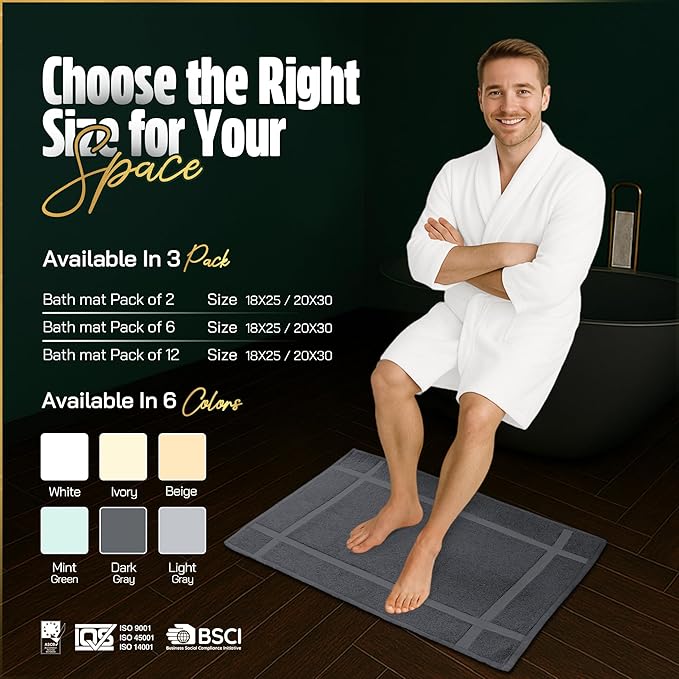- Made from 100% cotton : Our bath mats for bathroom offer superior softness and absorbency. This 12-pack bath mat set includes 20X30" mats that function as a tub mat, quickly soaking up water and keeping your feet dry.