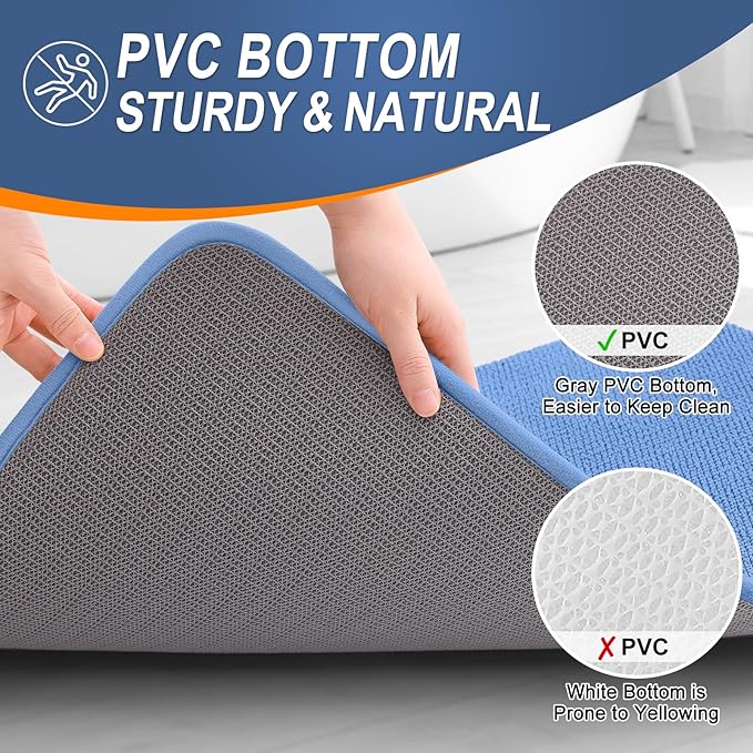 - [Sturdy PVC Support] OLANLY's bathroom mat is equipped with a robust and enduring PVC backing, which is designed to avoid any movement or slipping. This excellent structure distinguishes it from mats with rubber backing that may deteriorate as time goes by. Make sure the area under the rug remains dry for the best performance, and never put it on wet surfaces.