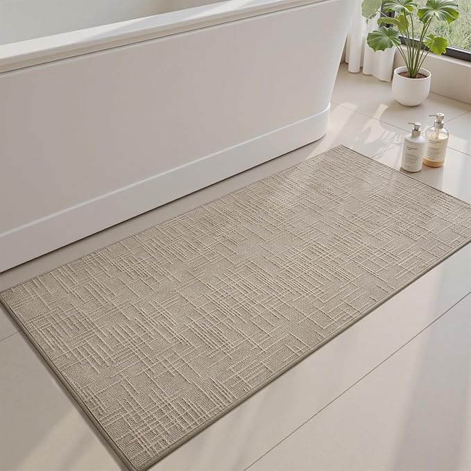 - Easy to Clean and Maintain: These bathroom rugs washable can be washed by machine or by hand for long lasting cleaning. The fiber structure does not easily hide dirt. After washing, the beige bathroom rugs quickly regains its fluffy texture, and daily maintenance is simple and convenient