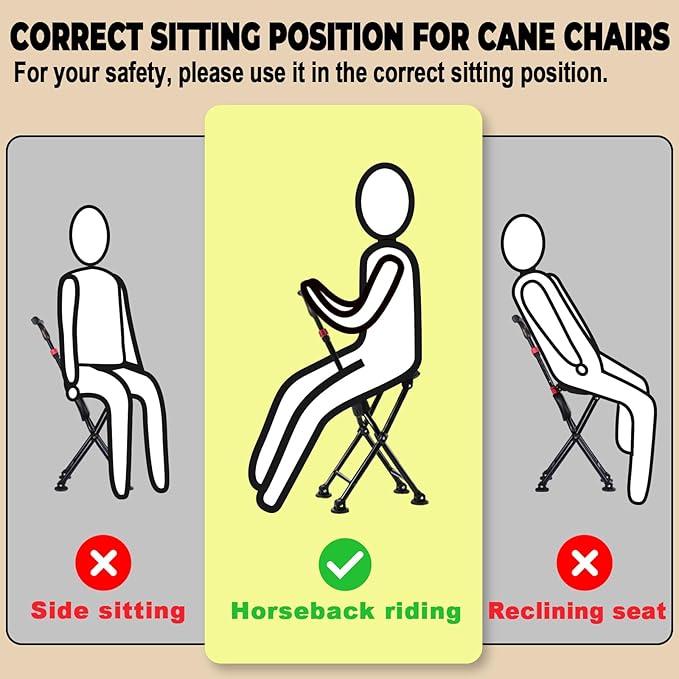- Suitable for Various Scenarios:This walking stick acts as a sturdy support cane when closed and provides a comfortable seat to rest on when open, Easy to fold and carry, perfect for walking, exhibitions, waiting in line, shopping, traveling, outdoor party, perfect gift for elders or yourself.