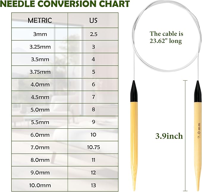 - 【Lightweight & Smooth】Made from premium bamboo, these circular knitting needles are light, warm, and easy on the hands.