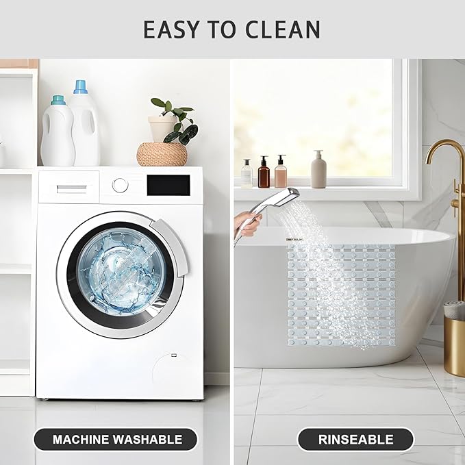 - Easy to clean and maintain; for daily cleaning, simply rinse the shower floor mat under the shower or throw it directly into the washing machine. Maintaining perfect hygiene is incredibly easy and hassle-free. Simply hang it by the bathtub to dry and air it out