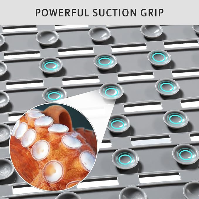 - Strong Suction Cups: XIYUNTE bathtub mat non slip boasts 180 powerful suction cups, boasting a grip that exceeds the competitive average by 25%. They firmly adhere to smooth surfaces, reducing the risk of slipping.