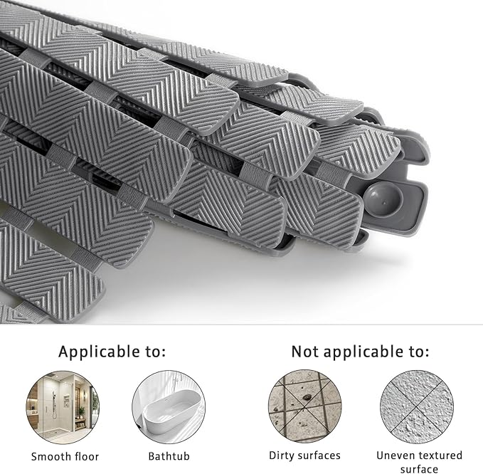 - Multi-hole "waterfall" drainage design: non slip shower mats features over 150 carefully designed, densely packed drain openings (20% larger than competitive options), draining water in 3 seconds and filtering hair, completely eliminating the problems of hair clogging and water odor in traditional tub mat