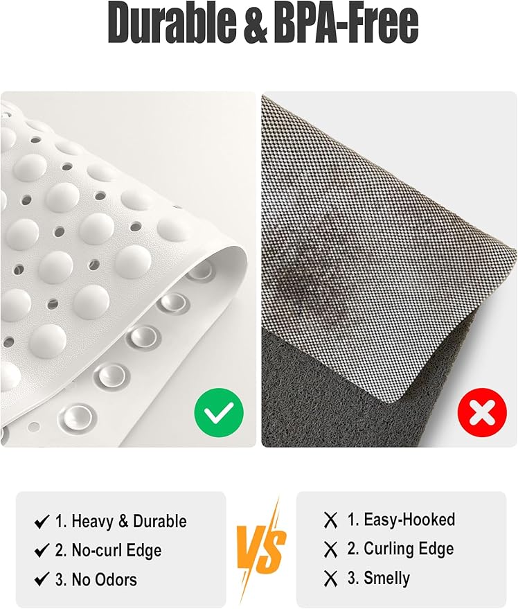 - Durable & Eco-Friendly: Flexible yet sturdy TPE construction provides cushioning for joints, making this bathroom shower mat comfortable to stand on. Thicker than standard mats, resistant to tears, cracks, and deformation for long-lasting use