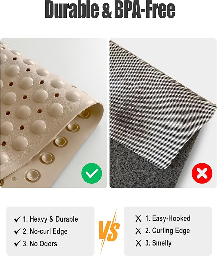 - Durable & Eco-Friendly: Flexible yet sturdy TPE construction provides cushioning for joints, making this bathroom shower mat comfortable to stand on. Thicker than standard mats, resistant to tears, cracks, and deformation for long-lasting use