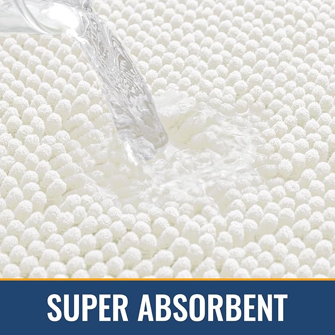 Arotive Bathroom Rugs 24x16, Extra Soft Absorbent Shaggy Chenille Bath Rugs, Machine Washable Rubber Backing Non-Slip Bath Mats for Bathroom Floor Tub and Shower, Home Decor Accessories, Ivory