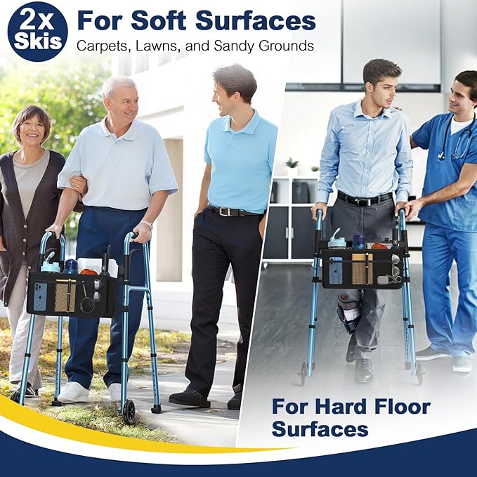 - Detachable Storage Bag: The senior walker with a removable storage bag keeps essentials like water, glasses, or a phone within reach—no need to carry an extra purse. With multiple compartments, this wheeled walker makes organizing and carrying personal items simple and convenient