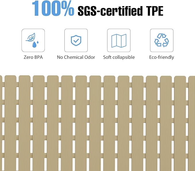 - Eco-Certified Bathtub Mat Material: This non-slip bath mat for shower/tub is crafted with 100% SGS-certified TPE (Test Report NO.CANEC25008026405), featuring Zero BPA & Chemical Odor,trusted by 12,000+ Families for Baby Bath Time Safety.