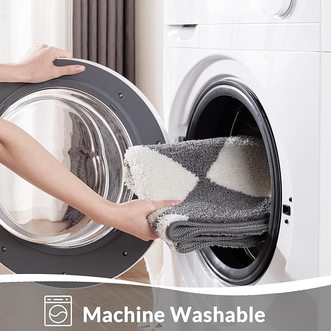 Exclusivo Mezcla Bathroom Rugs Mat 20x30, Extra Soft Non Slip Absorbent Water Microfiber Bath Rugs, Machine Washable Quick Dry Bath Mats for Bathroom Floor, Shower, Home Decor, Checkered Grey