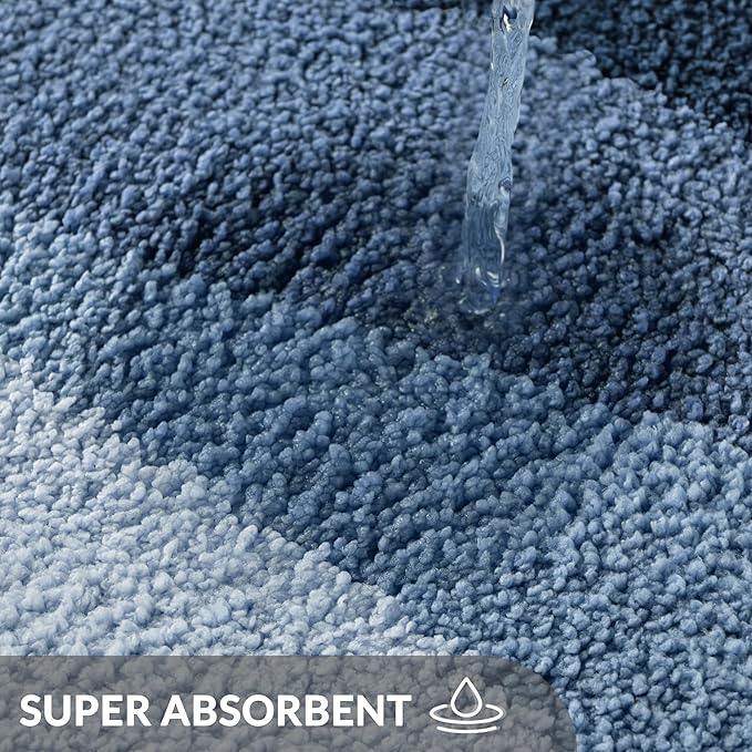 Exclusivo Mezcla Bathroom Rugs Mat 17x24, Extra Soft Non Slip Absorbent Water Microfiber Bath Rugs, Machine Washable Quick Dry Bath Mats for Bathroom Floor, Shower, Home Decor, Waved Blue