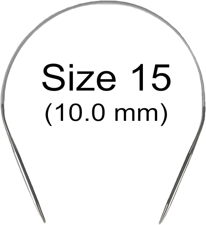 Size 15 Stainless Steel Circular Knitting Needles 16 Inch 10 mm Set Round Metal (Silver, 16 inch-15-(10mm))