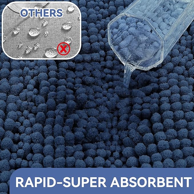 - Luxuriously Soft Chenille Bathroom Rugs:Experience cloud like comfort with our ultra plush,high density microfiber chenille bath rug that keeps your feet warm and protected from cold bathroom floors.
