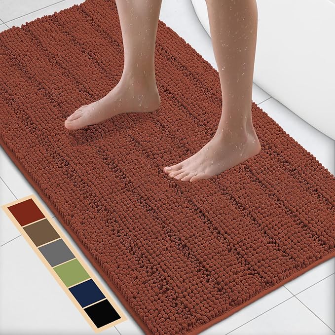 - Luxuriously Soft Chenille Bathroom Rugs:Experience cloud like comfort with our ultra plush,high density microfiber chenille bath rug that keeps your feet warm and protected from cold bathroom floors.