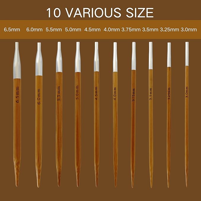 10PAIRS Interchangeable Removable Knitting Needles Bamboo Circular Crochet Needle Sweater Weaving Yarn Knitting Craft Tools