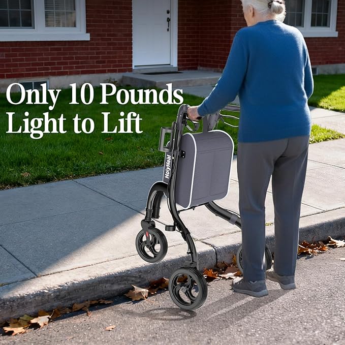 - Upgraded 3 Wheel Walker: FSA/HSA eligible. The rollator walker made of premium aluminum weighs only 10.2 lb but supports up to 300 lb, with thicker and wider tubing and a stable triangular frame that offers durability and secure assistance for daily walking