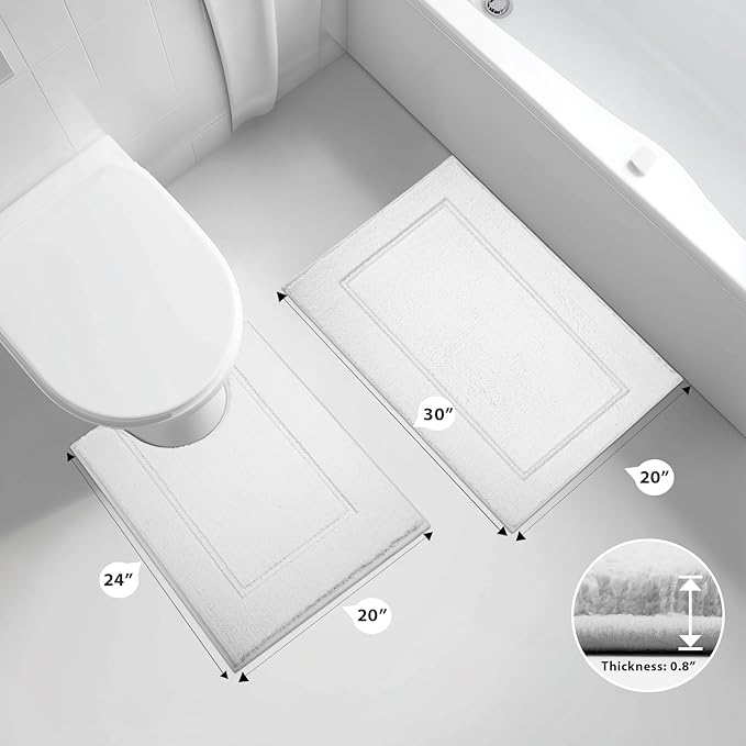 Bathroom Rugs U-Shaped 20" x 24", Non-Slip Extra Soft Absorbent Bath Rugs, Machine Washable Quick Dry Bath Mats for Toilet Base, White