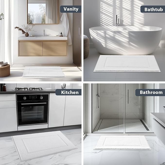 - VERSATILE FOR MULTIPLE SPACES: Perfectly suited for various areas in your home, this rug works great in front of the shower, bathtub, sink, or even in the kitchen. Its simple yet functional design brings comfort and practicality wherever it's placed.