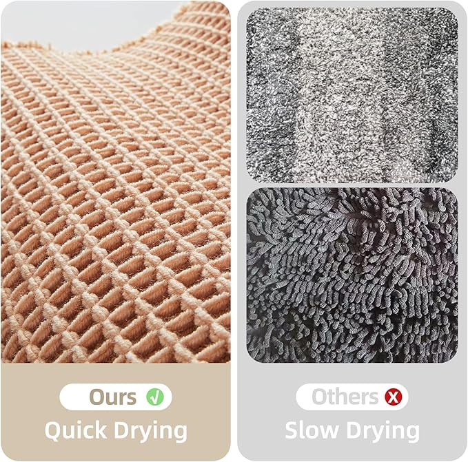 - Super Absorbent and Quick Dry: These waffle bath mats are moisture magnets! Their unique weave quickly absorbs water, keeping your bathroom dry and comfy