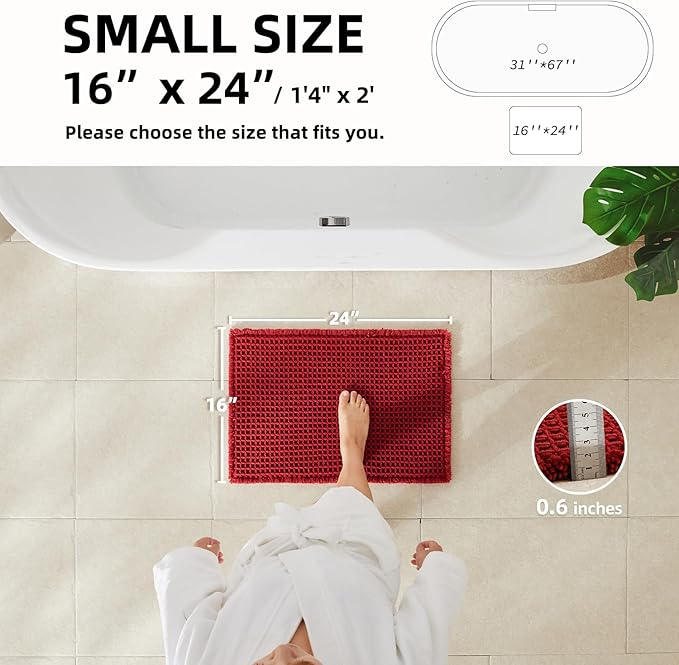 Waffle Bath Mat, Boho Bathroom Rugs Non Slip Washable Super Absorbent Quick Dry Bath Mat Farmhouse Bathroom Decor, 24"x16" Burgundy