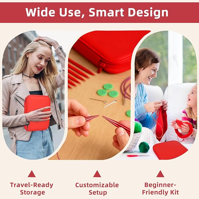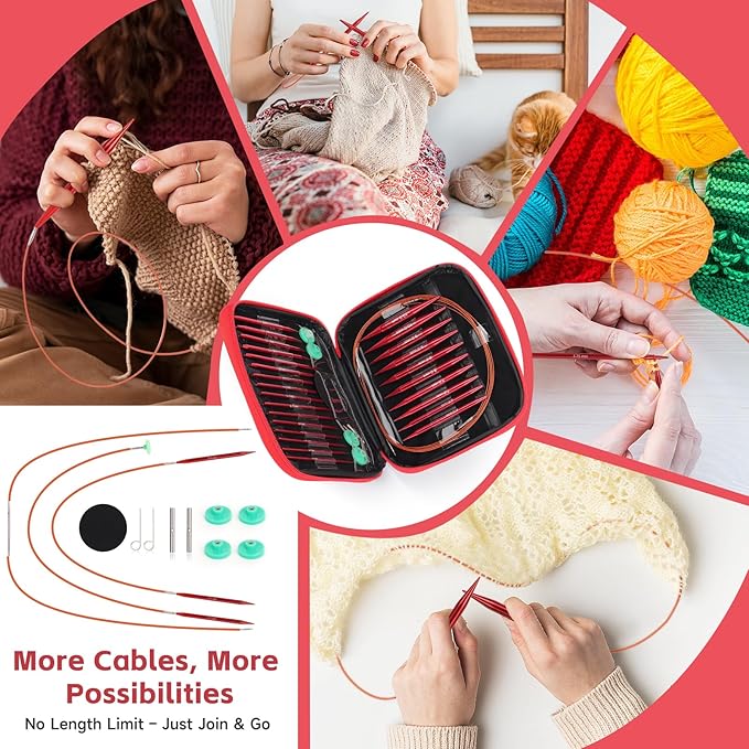 - Comfortable Ergonomic Grip & Easy Storage: Ergonomic needle tips minimize hand fatigue, while the smart storage case features dedicated slots for each needle, cable, and accessory—keeping your knitting kit organized and travel-ready
