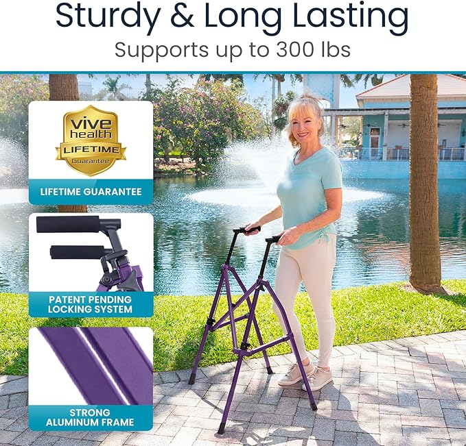- SAFE, STABLE, & PATENT-PENDING: Built from high-strength aluminum, this lightweight 5.5 lb walker supports up to 300 lbs. Its patent-pending locking system ensures secure folding, while the lifetime frame guarantee provides lasting confidence in its durability.