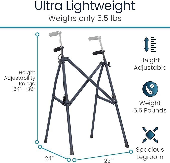 - COMPACT, FOLDABLE, & ULTRA-LIGHTWEIGHT WALKER: This effortlessly folds in one step for easy transport in cars, small spaces, or closets. Features a PATENT-PENDING locking system to keep it securely folded when stored. Weighs just 5.5 pounds yet supports up to 300 pounds for reliable stability.
