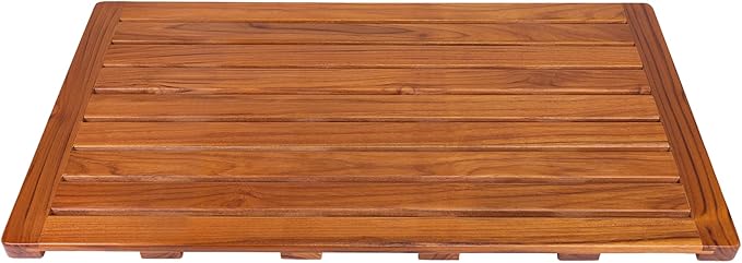 - Efficient Drainage Design: The teak slats are spaced to allow water to drain quickly while maintaining comfort underfoot. This helps the teak shower mat dry faster after each use