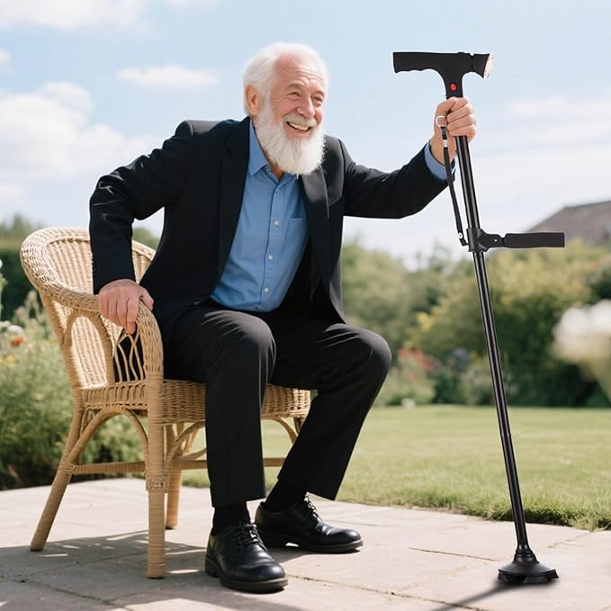 - 【Dual-Function Handle System】Experience dual handle convenience with an ergonomic offset handle featuring non-slip foam grip for comfortable walking, plus a secondary assist handle specifically designed for standing support. This mobility assistance cane offers stable lifting aid from seated positions, making it an ideal rehabilitation tool.