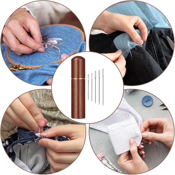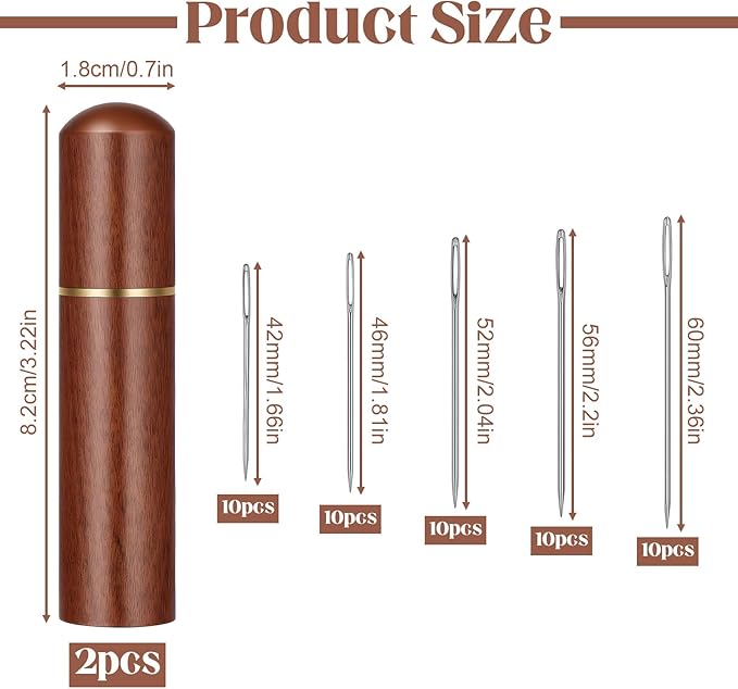 - High-Quality Materials: Our large eye needles for hand sewing are made of iron, making them resistant to deformation and rust, with smooth edges and sharp tips. The needle cases are made of natural rosewood, offering a simple and elegant appearance and a natural fragrance.