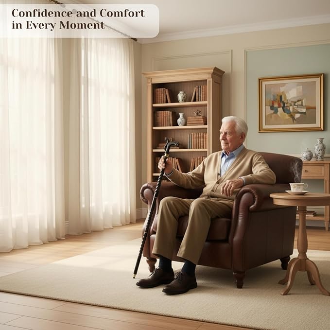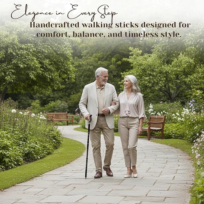 - Spiral-carved black wooden shaft offers strength, comfort, and elegant texture for smooth walking.