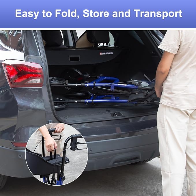 - ✅【LIGHTWEIGHT & STURDY & FOLDABLE STRUCTURE】This walkers for seniors with seat features a high-strength aluminum alloy frame, weighing only 20lbs, yet capable of stably supporting a maximum weight of 300lbs. Its innovative one-touch folding design allows for easy folding simply by pulling the black strap on the seat. After folding, it is only 17.3*8*22.4in, making it convenient to store in a car trunk or a corner of the living room for carry and outings. It is an ideal walking aid for seniors and people with mobility impairments.